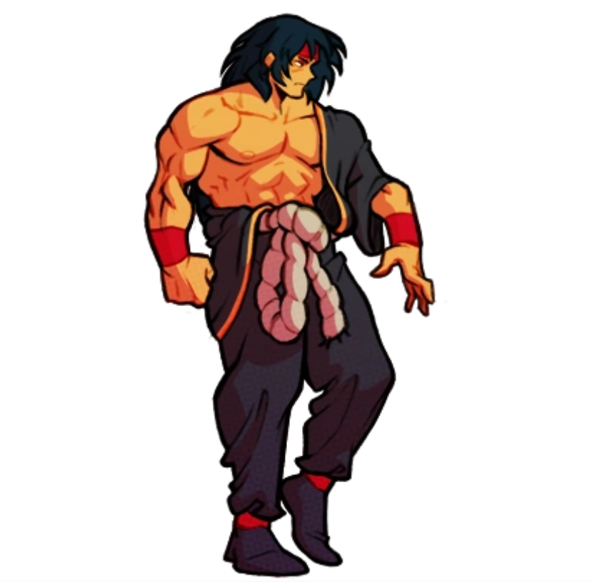隐藏人物,一看就是会武术的。。。获得方法是第一关关底打败他之后按住拳不放,直到画面切换,之后续关时就可以用他了,同样也是不能在开始界面选择。牛人一个,拳脚伤害高,速度快,更离谱的是有一招无限连,而且比袋鼠的简单,不愧是boss级别人物。