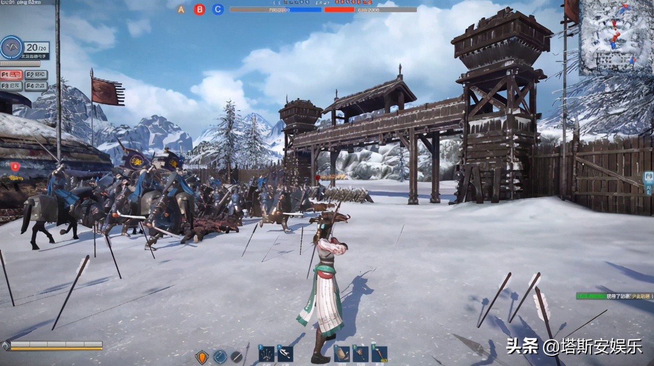 然后进入人机对战,游戏里面的内容是东西方进行混战,玩家方操控的是三国时期阵营,对抗古代罗马阵营,战斗的场面非常震撼,还有很强的策略元素。