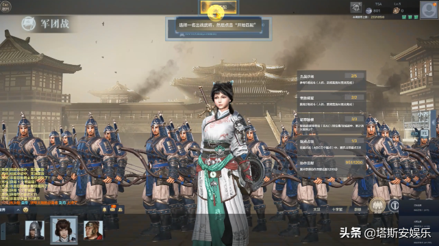 完成这些后,玩家将开启正式的游戏生涯,游戏中会默认给玩家2~3个默认武将,玩家可以随意选择加入战斗,而且每一种武将都有不同的战斗能力,比如有专注骑兵战斗的,专注弓箭战斗的,和常规地面冷兵器战斗的。