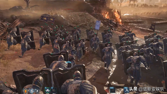游戏中的每一位武将,都能代表一整支阵营和军队,战斗起来会非常混乱,只能以颜色来区分自己的友军或敌军,冲进敌方阵营,斩杀他们的主将就可以歼灭整支军队。