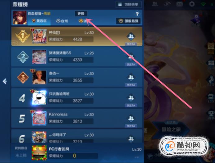 04进入荣耀榜后,我们就可以查看现在的地区英雄排行榜了。如图所示。