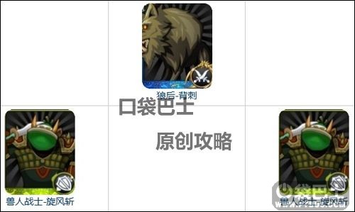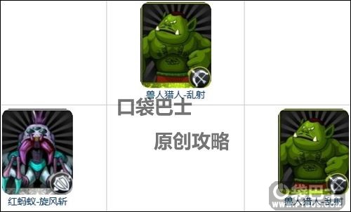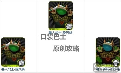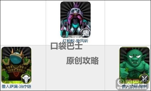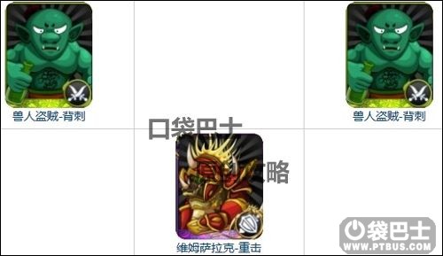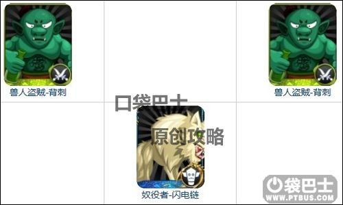 这个关卡为前排两个大boss,左边为兽人战士,拥有旋风斩技能。右边则为兽人萨满,拥有治疗链技能,后放方的小怪则为兽人战士。所以需要优先将后排小怪秒掉,由于兽人战士拥有物理抗性,所以可以多采用法系攻击。