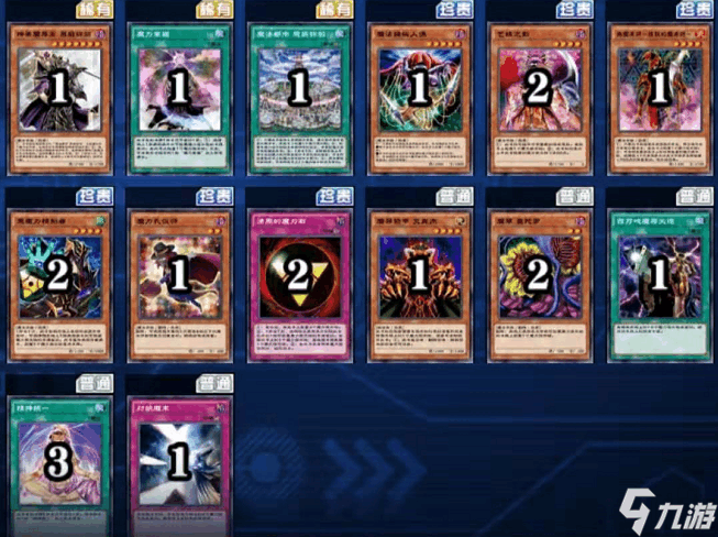 具体的卡组配置是:2神圣魔导王,3魔法伟人,2黑魔力精制者,1球形栗子。1魔法都市 恩底弥翁,3魔力爆发,3精神统一,1强欲之壶的碎片,2敌人控制器,1对死者的供奉,1自律行动部队。技能推荐抽卡预感高星,保证魔导王上手。