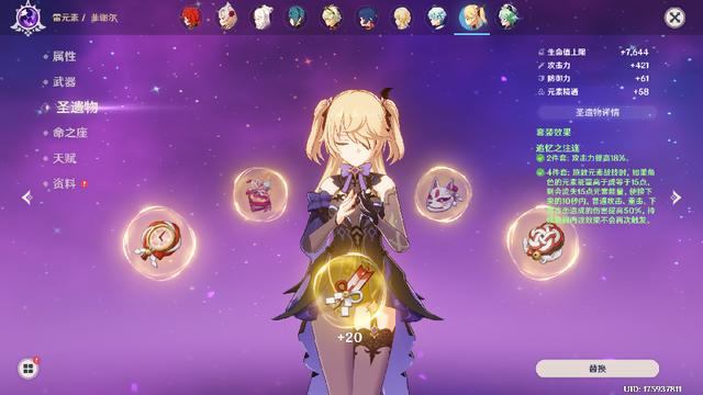 这套圣遗物组合成型更快,而且好刷,质量有一定的保证。武器尽量选择一些五星武器,使得大攻击更加保值,总体收益很可观。