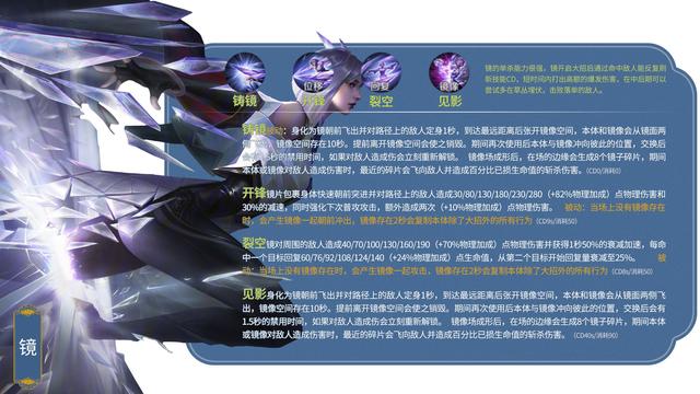 34.镜/刺客战斗台词:黑色,光明的预言!铭文搭配推荐:异变+鹰眼+隐匿出装推荐:追击刀锋+抵抗之靴+暗影战斧+名刀·司命+碎星锤+破军