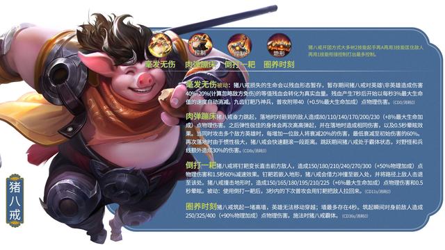 102.猪八戒/坦克战斗台词:什么都吃,就是不吃兔子!铭文搭配推荐:异变+虚空+调和出装推荐:影忍之足+红莲斗篷+不死鸟之眼+霸者重装+极寒风暴+魔女斗篷