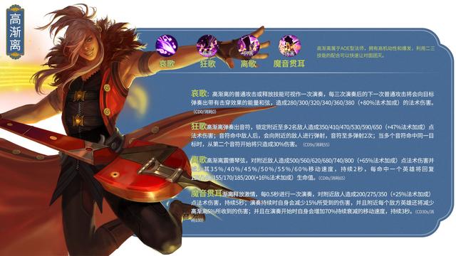 24.高渐离/法师战斗台词:我们的灵魂总算起共鸣了,虽说偶尔还是有点跑调!铭文搭配推荐:梦魇+心眼+贪婪出装推荐:抵抗之靴+噬神之书+痛苦面具+极寒风暴+博学者之怒+虚无法杖