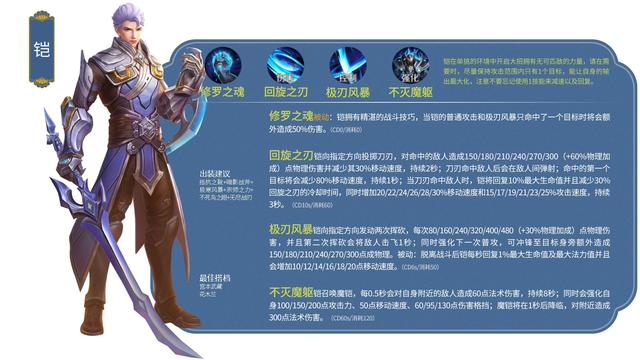 36.铠/战士战斗台词:你的美丽,更甚利刃的锋芒!铭文搭配推荐:传承+鹰眼+隐匿出装推荐:抵抗之靴+暗影战斧+极寒风暴+宗师之力+不死鸟之眼+无尽战刃