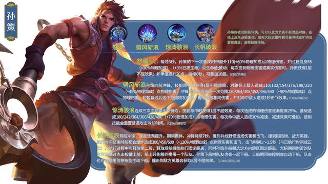 72.孙策/战士战斗台词:任何时候,都要努力去感受幸福的存在!铭文搭配推荐:异变+鹰眼+隐匿;出装推荐:抵抗之靴+暗影战斧+宗师之力+破军+名刀·司命+魔女斗篷