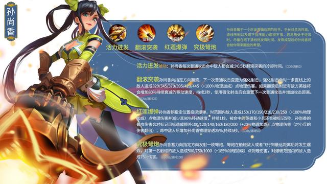 73.孙尚香/射手战斗台词:除了炮弹,本小姐没什么别的跟你们交流了!铭文搭配推荐:祸源+鹰眼+隐匿;出装推荐:急速战靴+闪电匕首+无尽战刃+宗师之力+破晓+破军