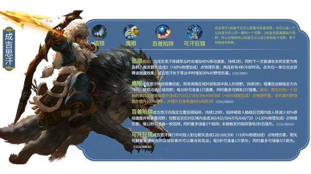 13.成吉思汗/射手战斗台词:当你凝视深渊的时候,深渊也在凝视你!铭文搭配推荐:祸源+鹰眼+狩猎出装推荐:急速战靴+无尽战刃+极寒风暴+不死鸟之眼+末世+贤者的庇护