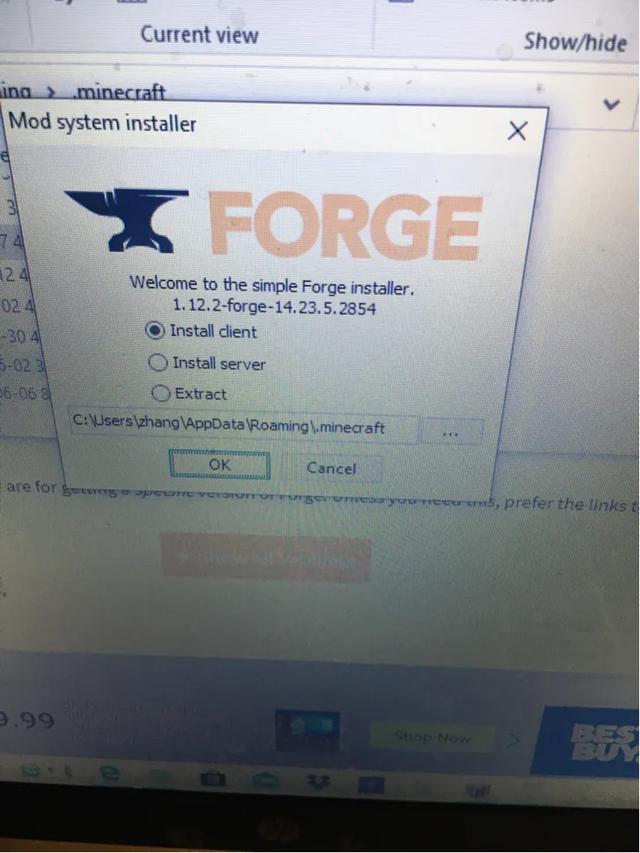 下载forge,运行后选择install client