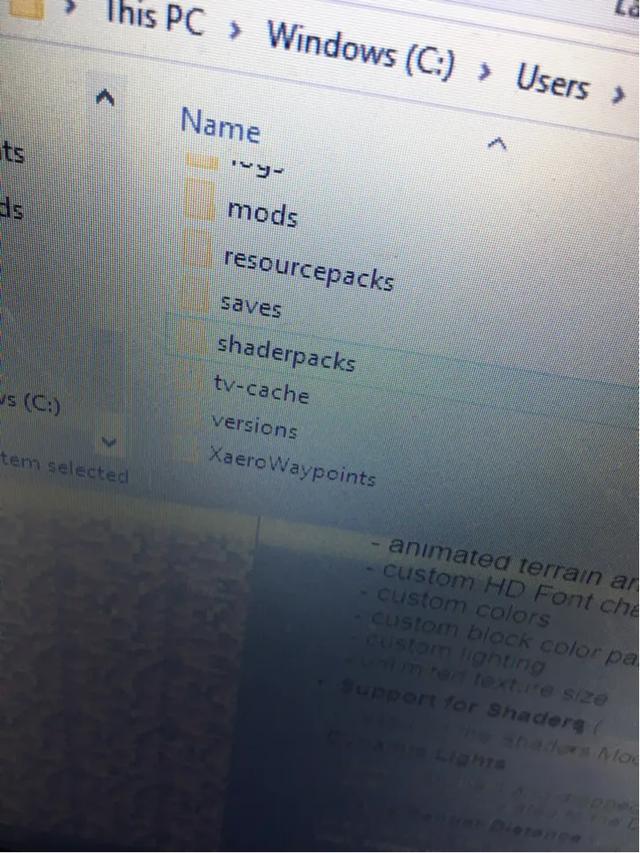 把下载好的版本合适的光影(ZIP文件)拖进shaderpack文件夹。