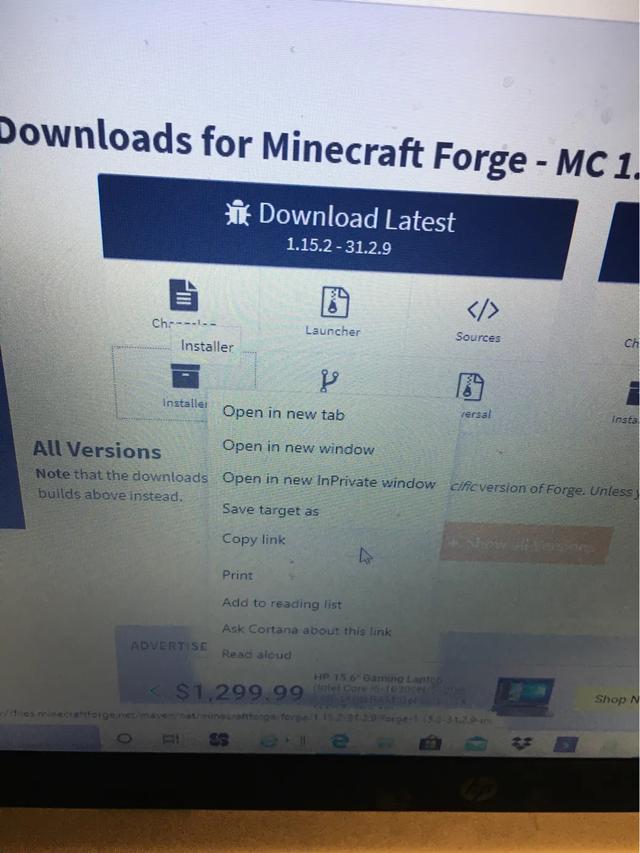 直接点击下载会把你带到一个广告页面去。我们需要做的是右键点击forge下面的installer,并复制网址。