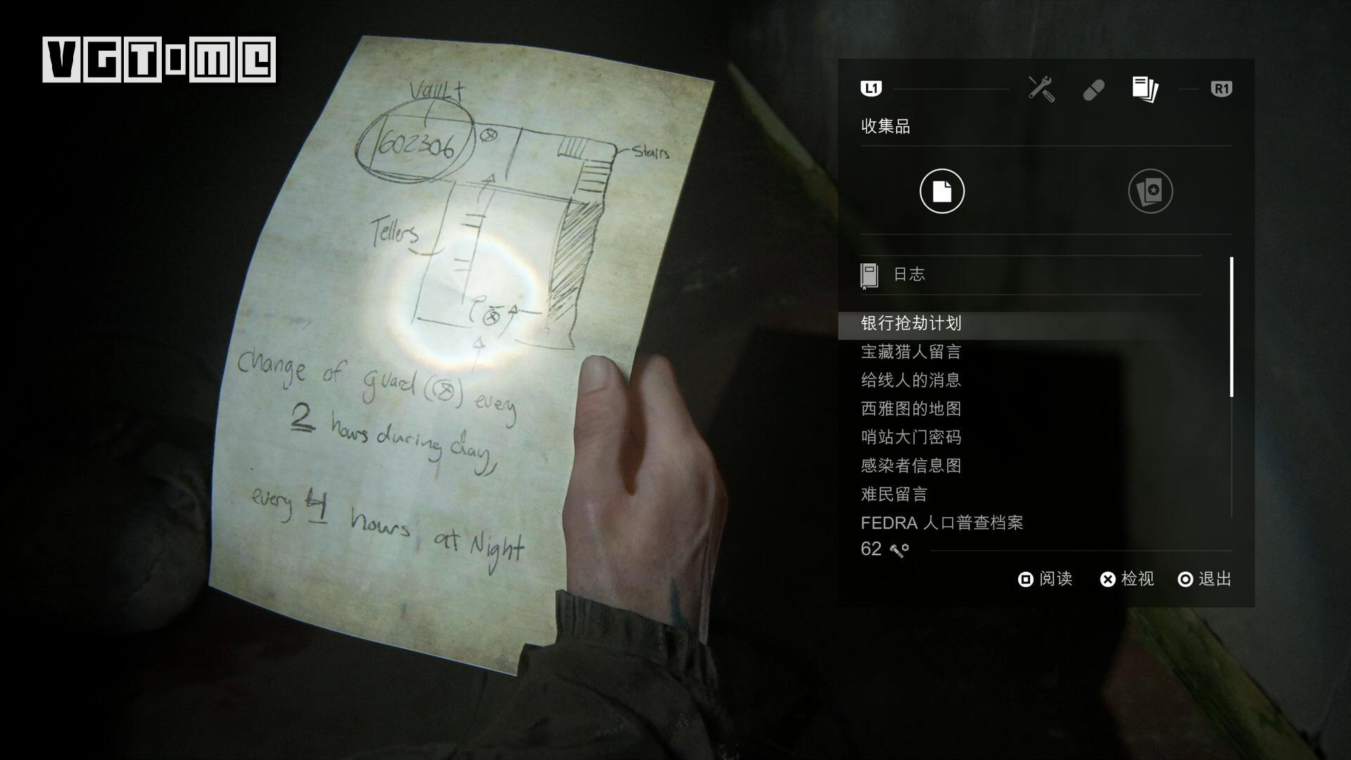 《最后生还者 第二部》中包含很多收集要素,「保险箱」就是其中之一,玩家可以需要通过拿到文献来判断保险箱的密码,打开后可以得到补给或是收集品。游戏中共包含 14 个工作台,这里给出每个关卡中保险箱的具体位置和打开方法。