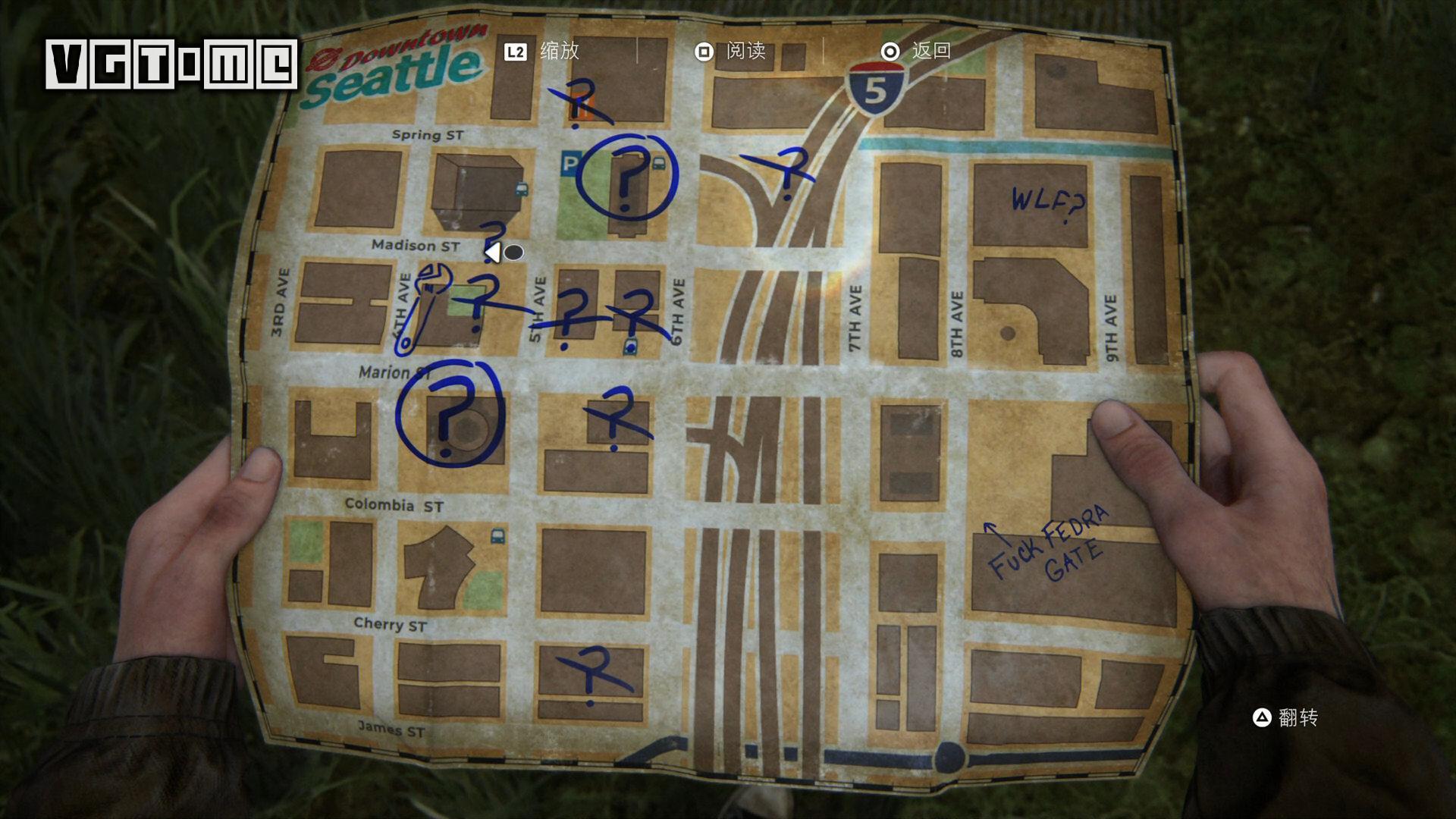 来到西雅图下图位置,看到保险箱,旁边写着需要大门密码,回头开标志写的是「西2门」,对照在上一关为了开门而拿到的收集品,密码是「0451」。