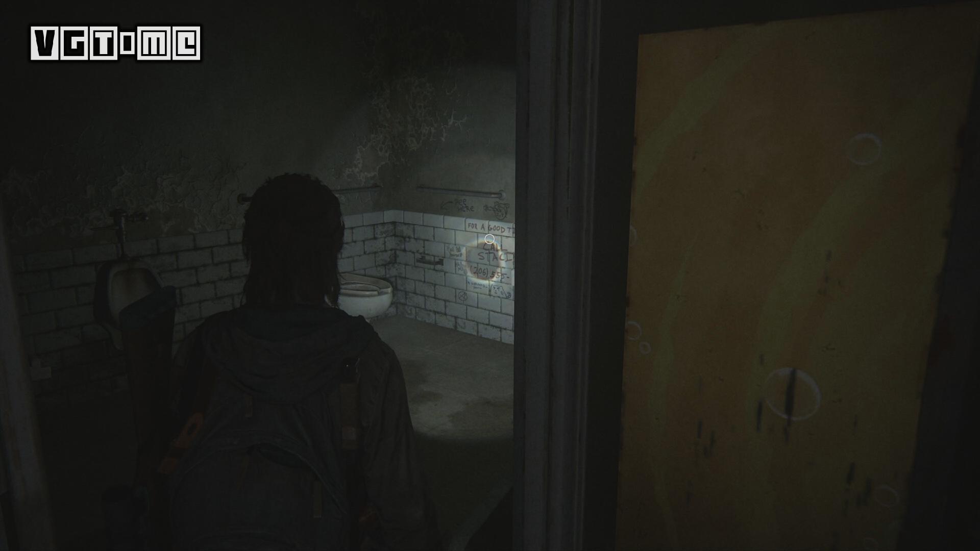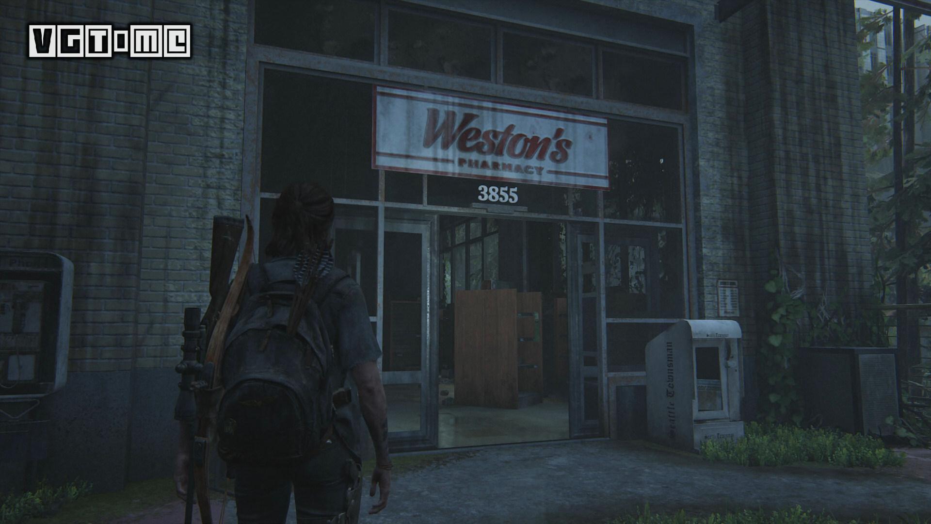 从自行车店离开进入下图的店内,钻过下图的洞干掉跛行者,可以在墙上找到收集品,显示密码是「308265」。