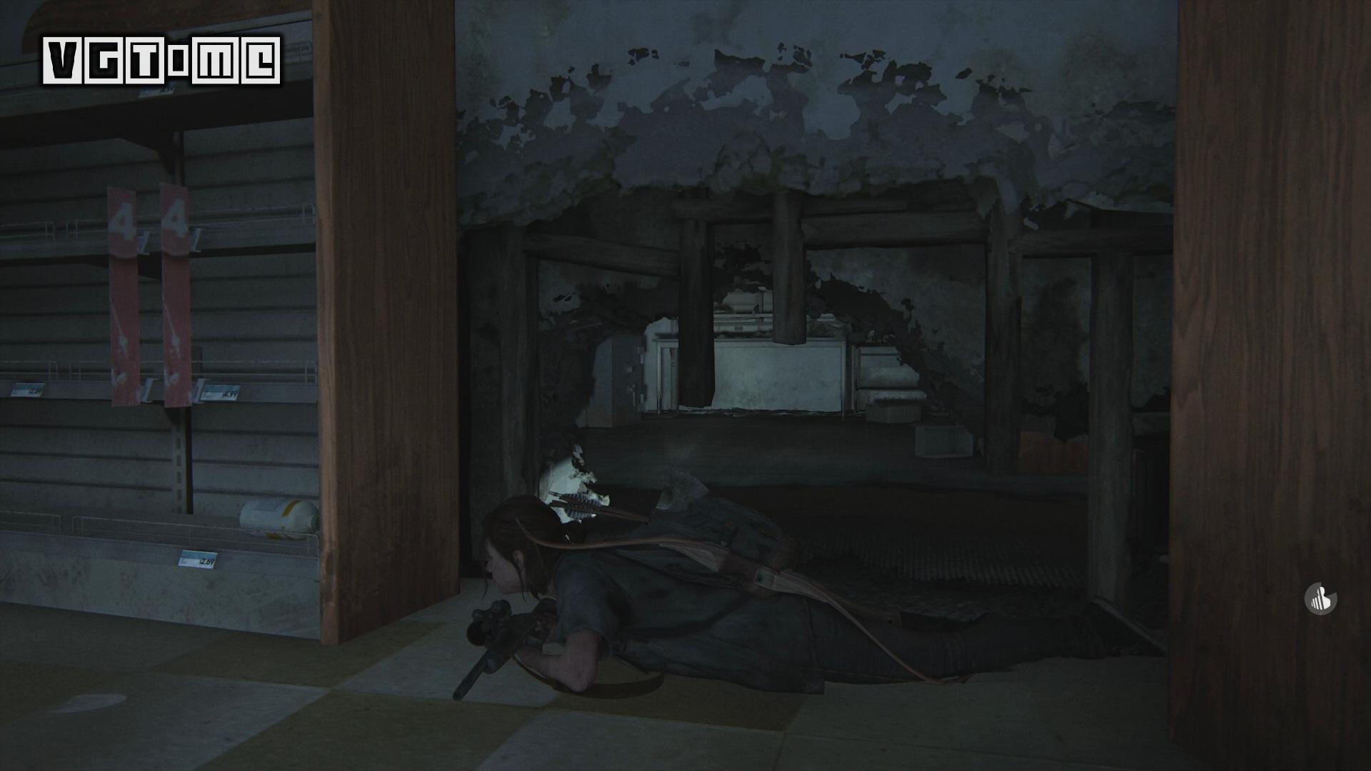 和蒂娜探索超市,遇到孢子戴上防毒面罩,穿过墙缝会看到超市的最佳员工展示板,右边的门打开后里面有个保险柜,旁边的桌子上有收集品。