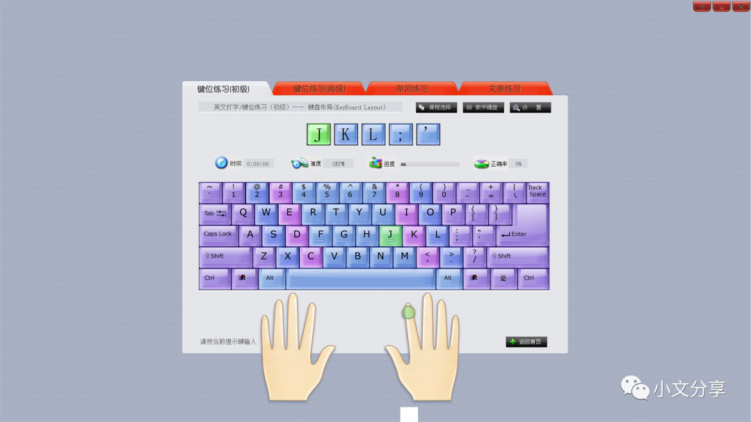 10) 科学打字教学先讲解知识点,再练习,最后过关测试