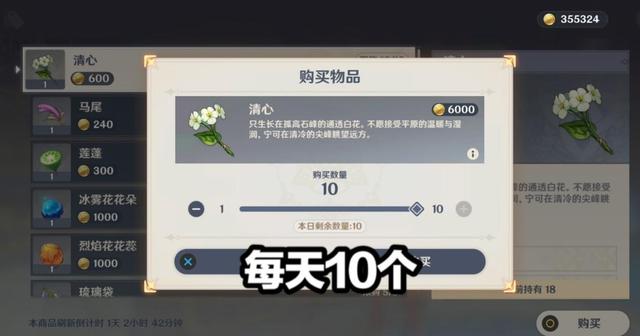 第二,清心的外形不明显,很像是甜甜花,很多时候从远处看它像一朵清心,但是走进一看你会发现其实这是甜甜花,而且一般清心都在角角落落里面,想要找到就更难了,所以找清心难的不是168个,而是它不好发现,如果不是老玩家,估计萌新得对着攻略去找了。所以官方也是比较暖心的,玩家可以在璃月港的不卜庐直接获得,每天能拿10个,摩拉也不多,算得上官方“补偿”了,而且琉璃袋也可以在这里获得。