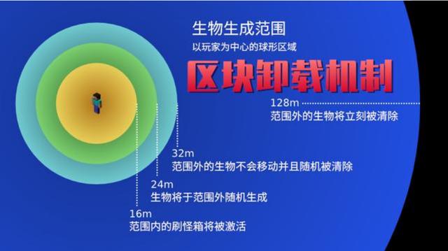 ②同一维度内;当玩家距离已加载区块的中心128格之内会激活区块刻,区块刻控制着生物生成、天气变化、水会结冰等等。所以当超过128格时,生物会消失。此外还有个东西叫作游戏刻,游戏刻控制着的区块的卸载、区块刻的逻辑、运算实体等等。因此当区块加载之后,方块实体便会开始倒计时。