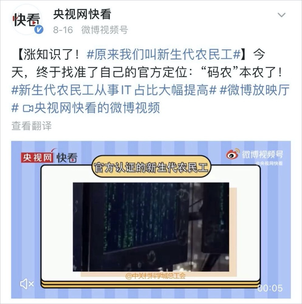 上班地点从工地转移到互联网,原来我们是新生代农民工……”
