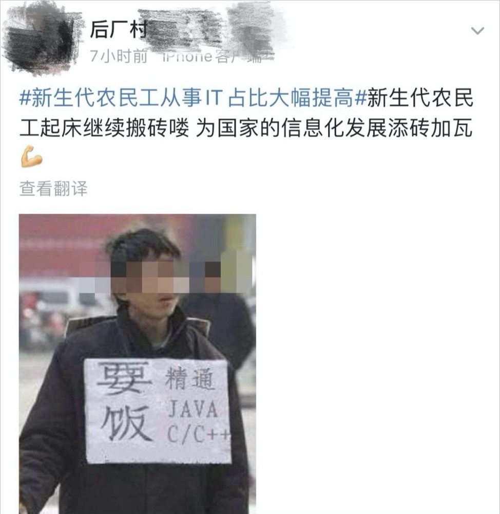 码农属于新生代农民工(IT从业者被定义为农民工)