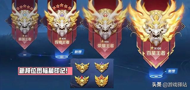另外下个赛季只要达到25-49星的玩家才能获得新段位“传奇王者”,值得一提的是“传奇王者”只是暂名,官方已向玩家重新征集,比如无双王者之类的名称。而S26赛季最有牌面的还是百星王者,新段位图标和印记看起来很拉风,如下图所示: