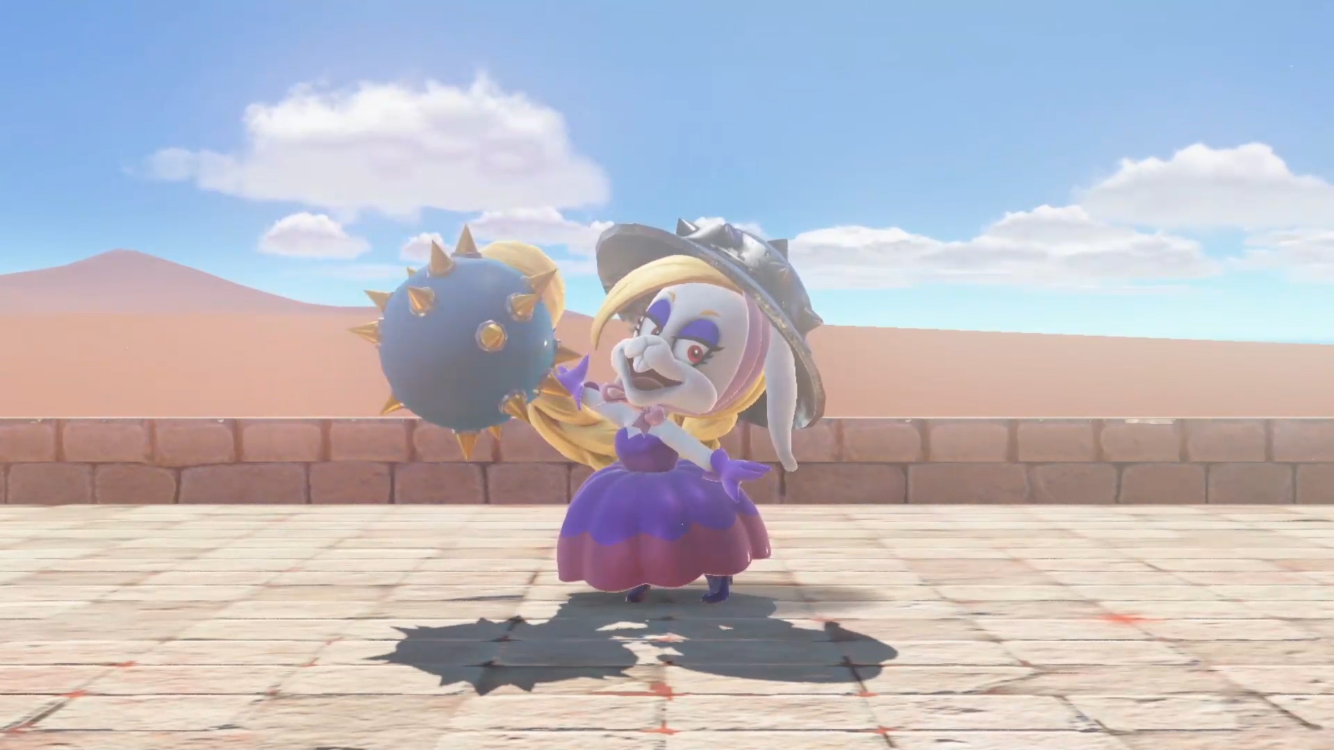 小紫第三次投掷出的炸弹会有一个很长的攻击前摇,稍微走位就好了,如果没有攻击到马里奥,她的辫子就会卡在地上