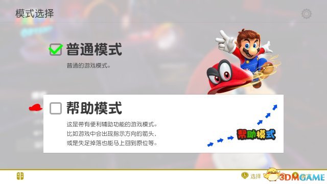 开启帮助模式之后,玩家会在坠落至深渊、毒泉之中时仅仅会损耗1点的HP,并且重新回到坠落前位置的;HP上限提高到原来的两倍,并且可以在原地休息数秒以逐渐恢复HP值;世界中将直观呈现出过关路线中最简单最不需要复杂操作的一种,给那些迷失在马里奥世界的玩家指明方向。