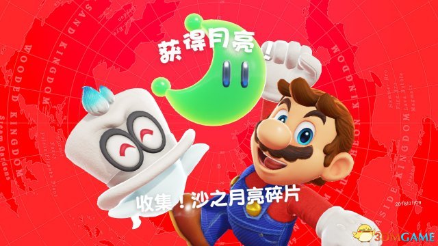 除了系列前作都有的收集金币之外,本作中的主要收藏品为分布在各国家四处的“力量之月”,以及可用于购买各国特色服装与纪念品的专属货币。然而玩家想发现并拿到到这些收藏品可绝非易事。游戏设计者往往会把月亮藏在世界的一个不起眼的角落,供玩家去探索寻找,或是将月亮作为一些隐藏在世界各处的小关卡的关底奖励。