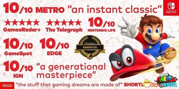 在2017年10月27日发售的马里奥系列最新作,《超级马里奥:奥德赛》虽然在TGA2017上惜败于《塞尔达传说:荒野之息》没能获得年度最佳动作/冒险游戏,但玩家间极佳的口碑,IGN、Gamespot等多家游戏媒体的满分评价,以及发售仅3日即在全球范围内卖出超过200万份的傲人成绩,以及足以证明了《超级马里奥:奥德赛的成功》。
