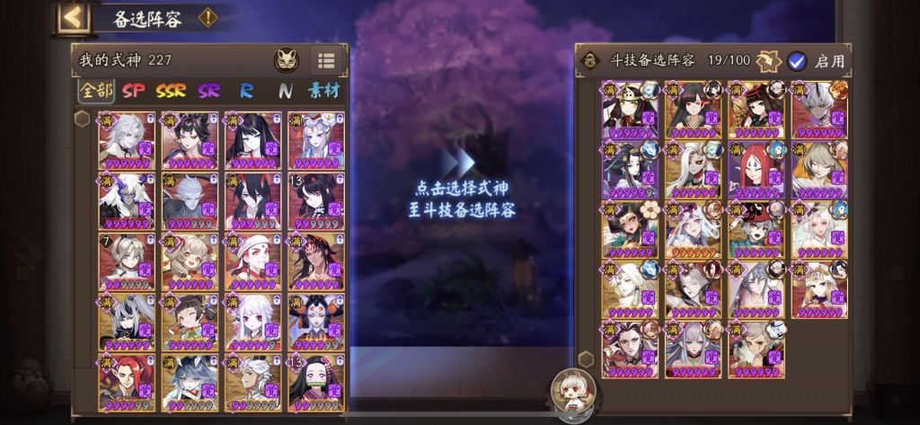 未觉醒千,帝,岚,吞,离,连,阎摩,不见岳,星熊,小白,驴,花(很少上,命中太低了,130),日和坊,清姬,灯姐。大部分都是pve 也能用的式神,萌新没有基本pvp 式神,除非两开花。花和驴的成本很低,6星觉醒就能用。