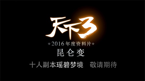 两年力作诚意更新 八载信赖品质首选!《天下3》2016年度资料片“昆仑变”将于12月2日正式上线!随着新资料片的上线,届时超强力度的福利也会随之上线,注册有礼百分百,VR眼镜等你来,实力保送60级,还赠粉色大翅膀!除此以外,还有最新的时装坐骑炫目登场,视频《屋里西海》展示最美西海景致,更有新服“昆仑变”与全新十人新副本“瑶碧梦境”强势开启!最后还会曝光万众瞩目的最新资料片实体盒子“昆仑玉匣”的信息哦!事不宜迟,别再犹豫,大荒携手八载情,西海重聚不言轻,咱们《天下3》西海见!