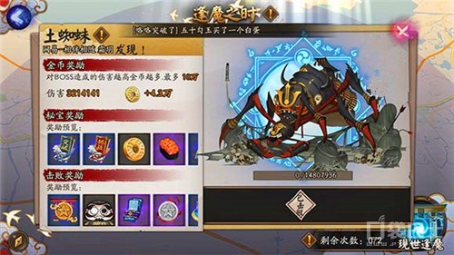 稀有BOSS战斗中采用全新的场景模式,阴阳师大人可以看到当前的战况,以及并肩作战的其他阴阳师们的情况。