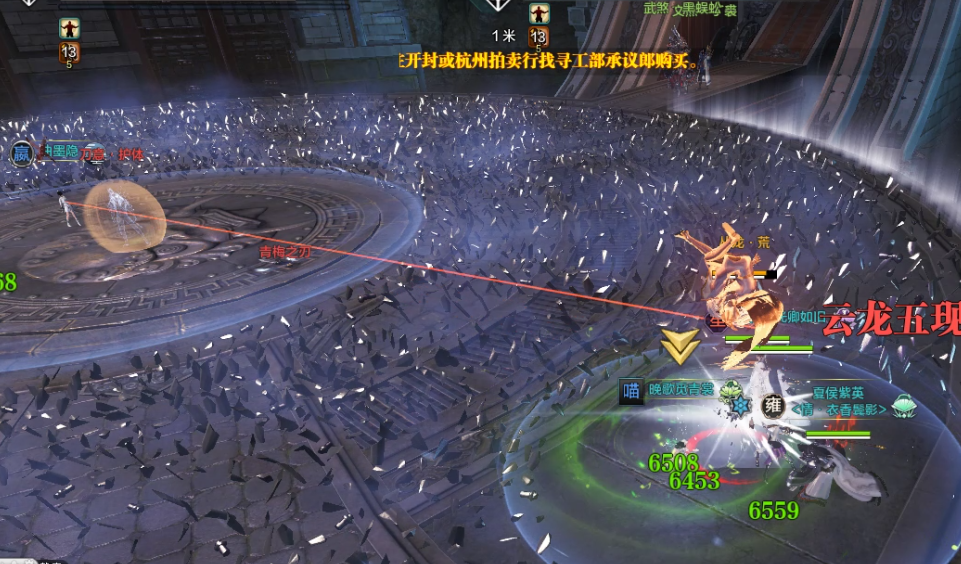 之后会随机选择一名玩家脚下出现一个圈,金色的所有人躲进去,黑色的则立即翻滚出去,重复三次以后,Boss的全屏aoe会给玩家带来损伤buff,buff上限十层。最后一个阶段为沧浪剑,剑雨会选择离Boss最远的玩家释放,注意拉住剑雨,同时躲避浪潮伤害只需朝浪高的地方三段跳穿云即可躲避。