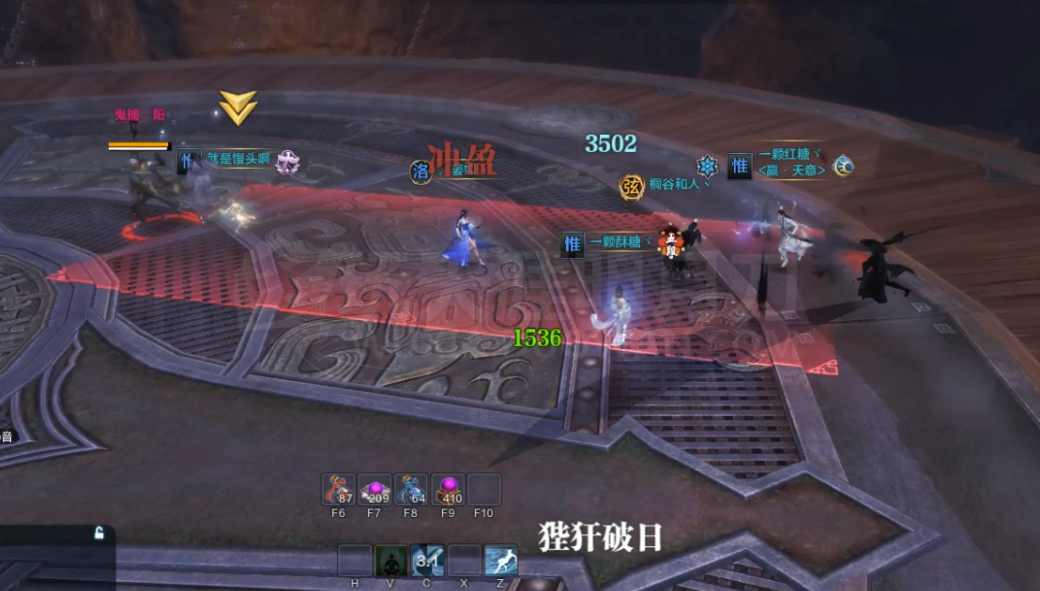 奶妈可带心法征旗铁马,CD一好就开天威天行,增加队伍输出效率。第二个阶段,Boss外有一个小圈,会出现夹子,人踩了之后不会掉大量的血。狗扑人的时候除非所有的队友都死了,才会扑奶妈。注意三个夹子才能夹死一只狗,意味着要拉狗使狗中三次夹子,随时翻滚拉开与狗的距离,避免狗直接扑向你,如果被狗扑倒,一直按住屏幕上的F键挣脱,此阶段狴犴破日为大扇形,三段跳或者靠近空气墙可躲避。