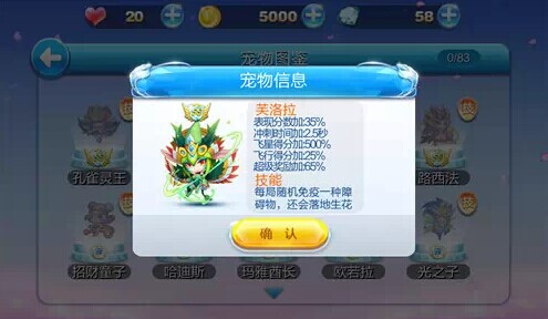 超级奖励得分加55%,表现分数加30%,冲刺时间加3.5s,飞星得分加400%, 飞行得分加45%,技能:游戏开始时随机召唤一只其他宠物