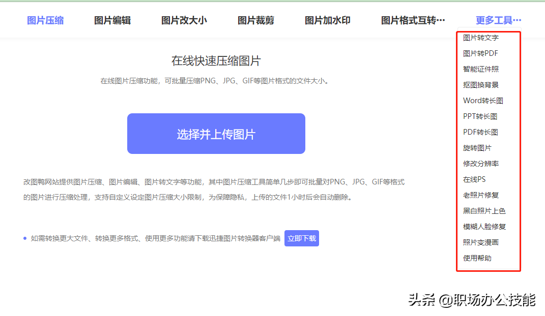 里面的功能都比较实用,有图片压缩、图片编辑、图片改大小、图片加水印、图片格式转换等功能。