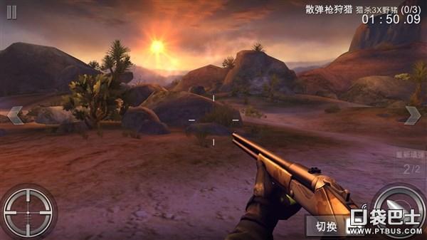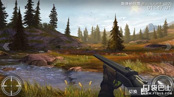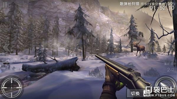 对于游戏操作方面是大家关注的话题,我觉得太复杂就失去乐趣性了,半天打不中多憋屈。游戏设置是5个触碰键,左右各2个方向键,调整左右视角和少许的前后视角,感觉不足的是只能180度观察,没有明显的前进或后退,显得有点局限了。左下是放大视角,瞄准动物心脏,肺部的需要,右下是发射键、切换枪支和装备子弹数。需要提醒的是多利用放大视角打中几率高,轻点容易打偏,打出完美射击还有慢动作特效,不要以为操作简单,千万别小看控制枪的准心和后坐力,这不是一件简单的事情。而且不像《使命召唤》这类游戏是战争背景让人有紧张感,《猎鹿人》就是单纯的走进自然体会狩猎乐趣,是以休闲为主的,受众群体广泛。