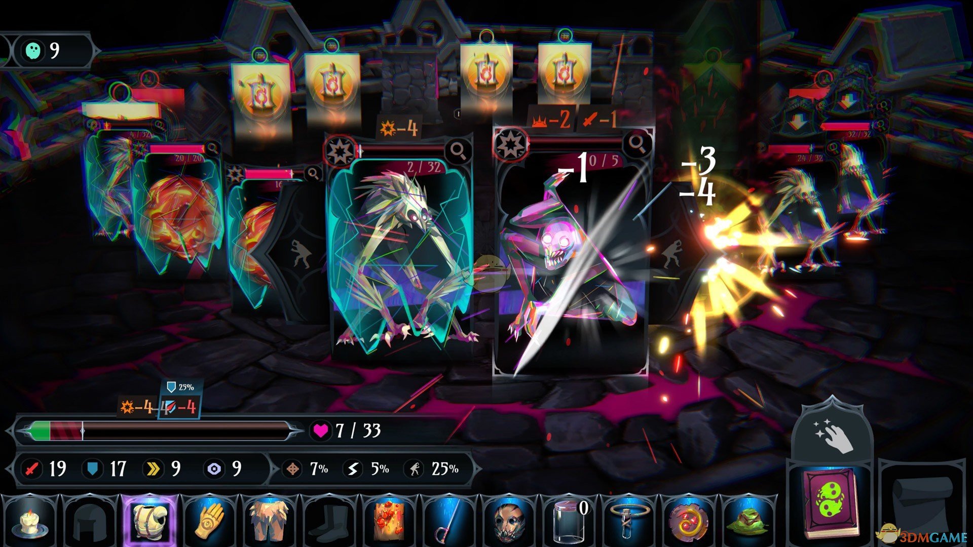 行动模式:向你移动、攻击、向后跳走、召唤生物、脆弱、尖叫攻击(让你现在面前的两张牌两回合后对你造成伤害)