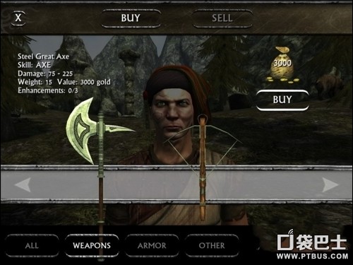 等到了这里你还可以购买一把大斧头,如果只是做第一个任务,使用这把斧头就足够了,对付洞里面的绿巨人一般都是一斧头解决掉一个,但是斧头的攻击频率有些慢,所以我们还是去使用剑吧。