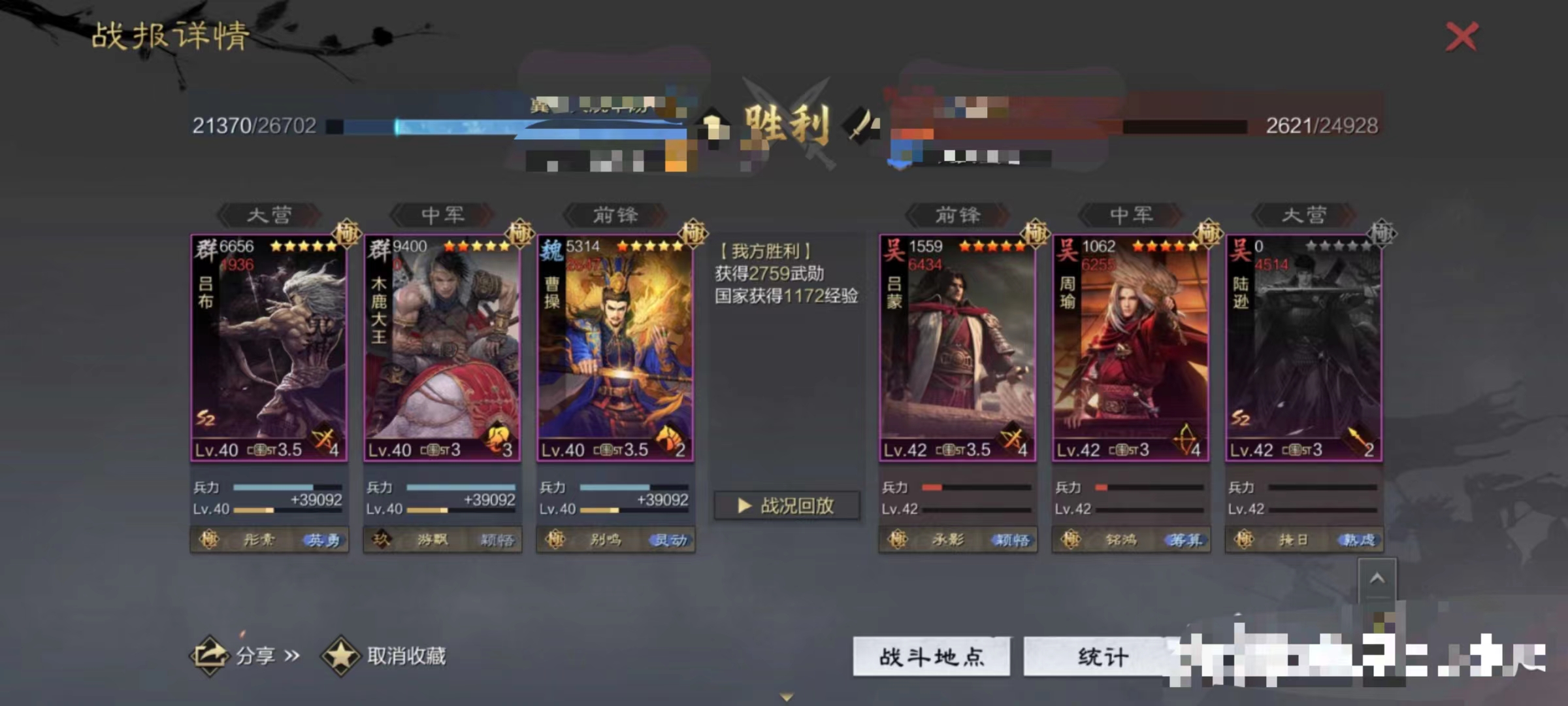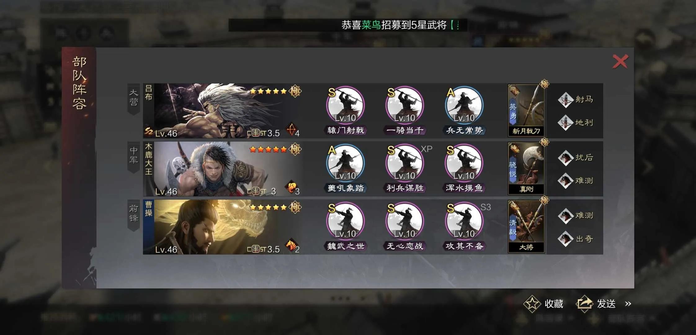 3.曹操战法无心对法刀有更好的效果,如果对面法刀较少可将其换成垒石或者空城。
