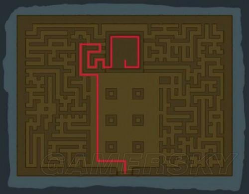 按照图片的线路走,就能找到神庙,破解神庙之后打开宝箱获取上衣。