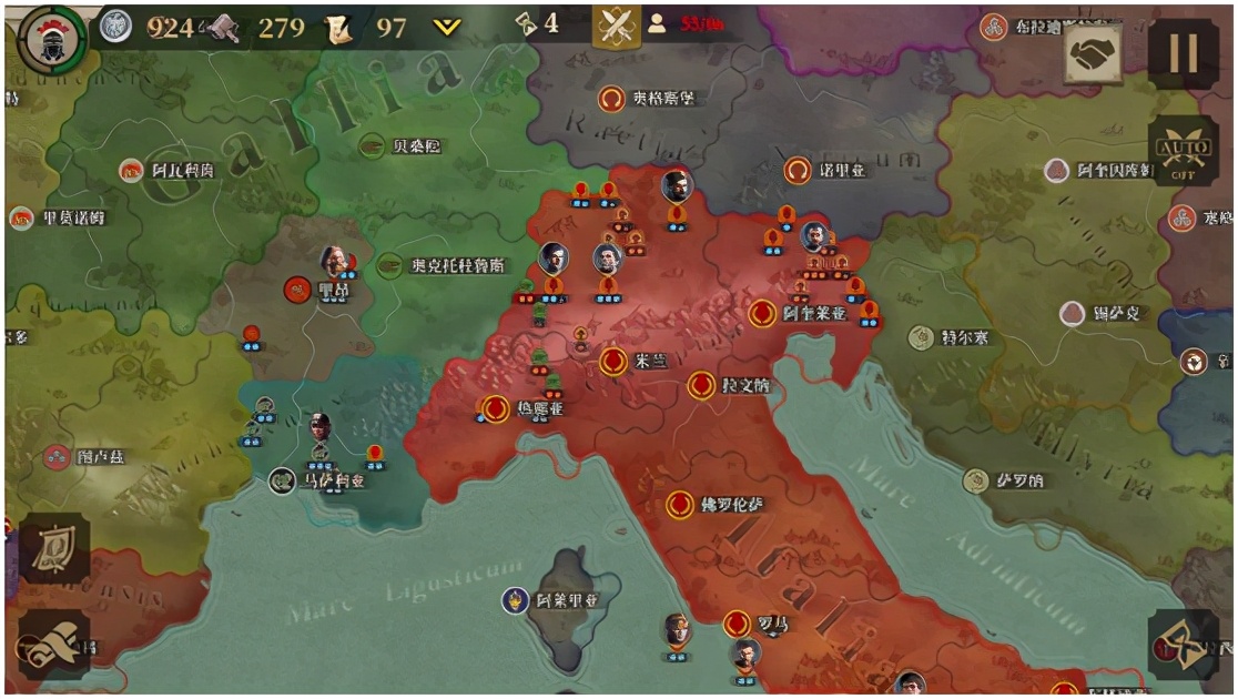 《大征服者罗马》同时还支持Game Center排名,看哪位玩家用最短的时间来占领最多的土地。同时还支持云存储,让你在上下班的路上可以用手机进行游戏,回到家用其他设备依旧游戏同步。游戏除战争元素外,还需要玩家对城市的建设,招募更多的精英士兵,还有制造强大的战争器械,除步兵骑兵外,玩家还要组建强大的舰队,来征服一些沿海势力。