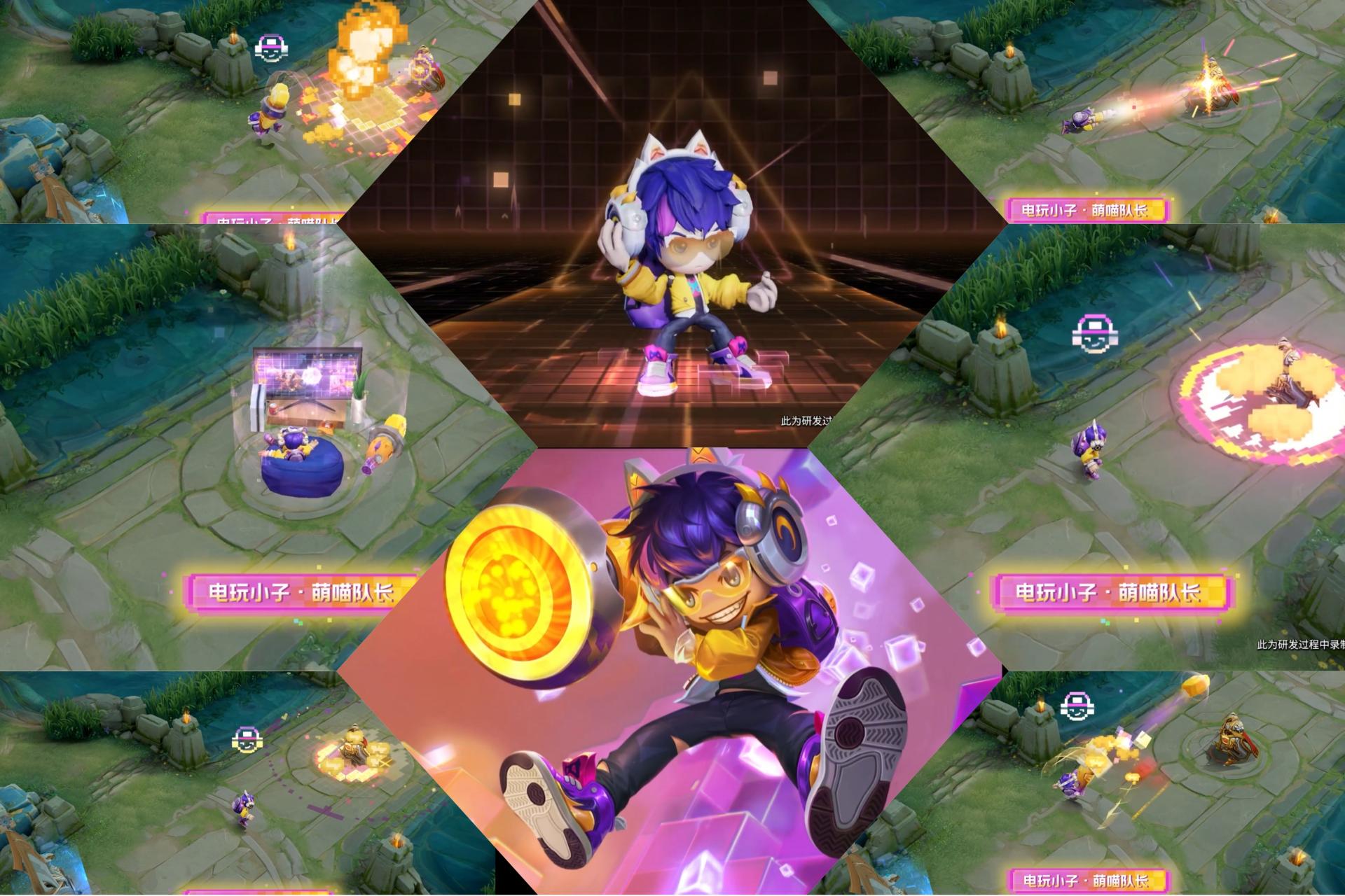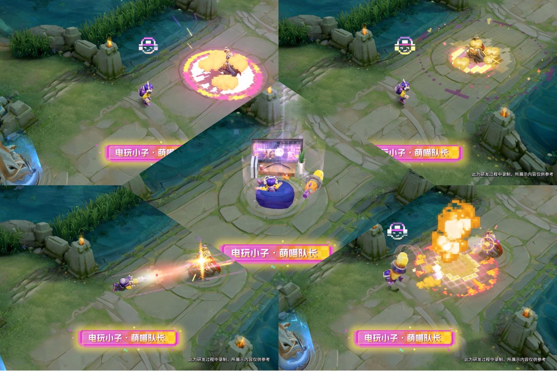 技能特效方面主要采用了黄色为主,相比电玩小子,这款星元套装的特效主要就是调整了一下颜色,区别比较大的就是大招中间的图案,融入了一点猫头的元素,而且大招周边的特效非常淡,要是不仔细看,你可能发现不了鲁班七号开了大招。