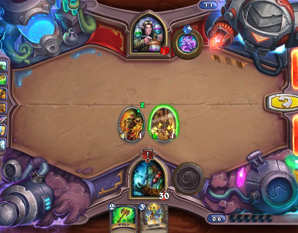 6.吼爹+狂暴、下血法、用盾猛打竞技场主宰(血量变为4)、旋风斩全场打2、刀砍憎恶、吼爹斩杀