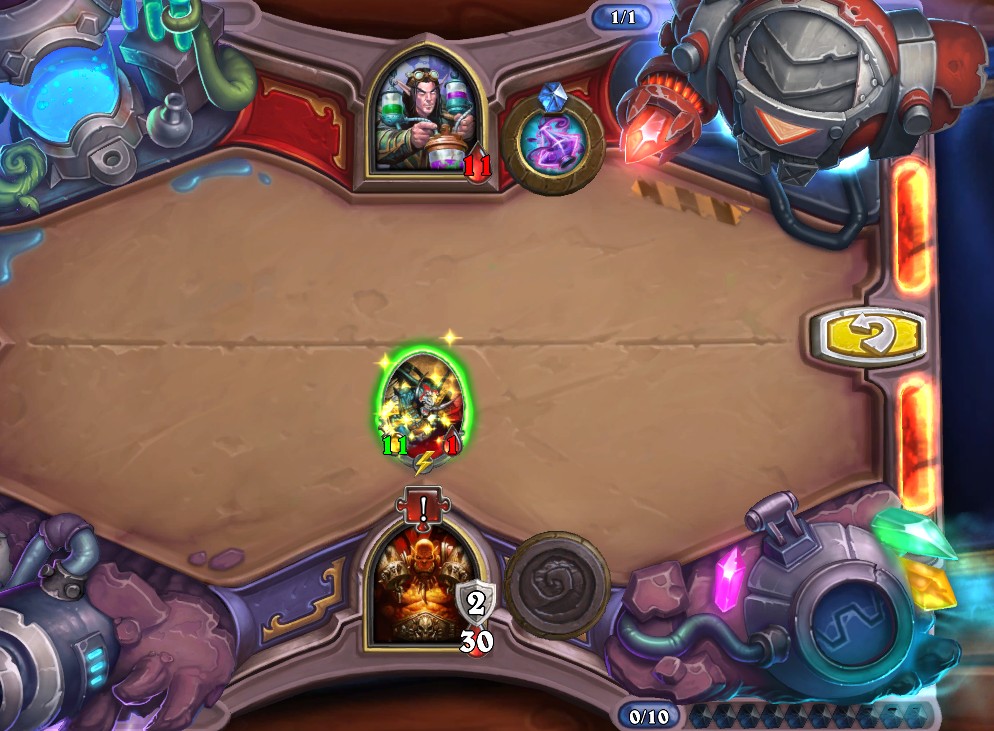 3.光照元素、奥金尼+心火变为1攻、治疗之环、疯狂药水拉奥金尼、翻倍+翻倍+心火打脸斩杀