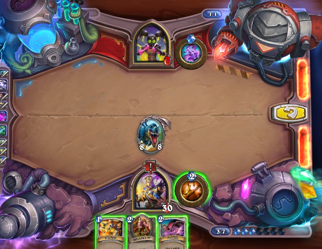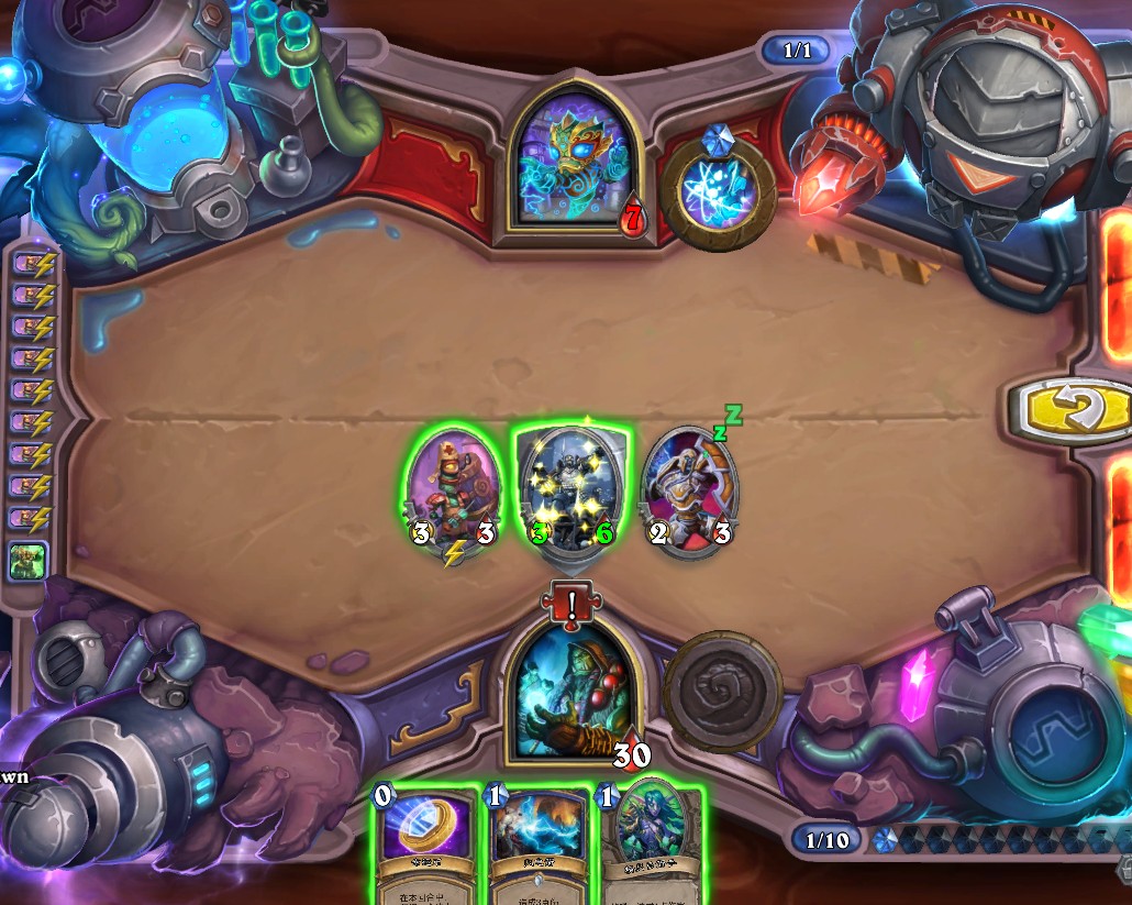 7.宇宙异像+奥术冲击解掉青铜门卫、硬币+星界密使+火球+4攻法力浮龙斩杀