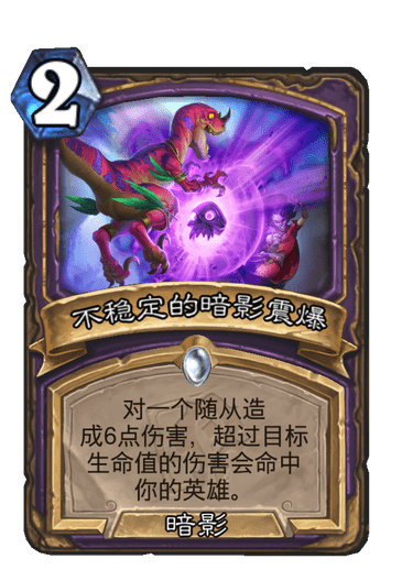 暗影震爆是一张很棒的卡,他的负面效果对竞技场来说几乎没有,2费打6相当于可以解一个五费怪。